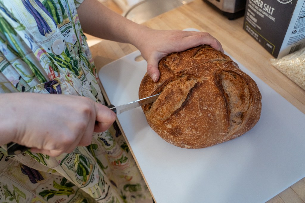 Village Bread (a local bakery in Calimesa, CA) ancient grains sourdough played a major role in the meal. I love this loaf because it uses einkorn wheat, one of the first wheats to be farmed. Einkorn has a nutty, almost sweet flavor that paired lovely with our vegan lemon ricotta & marinated stone fruits toast.