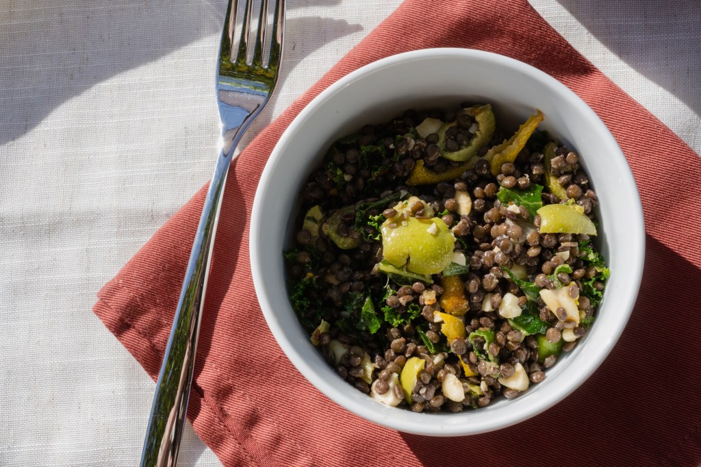 A crowd favorite was the black lentil salad. Black lentils and kale were marinated with more olives, lemon, garlic, scallions, and almonds. The result: a refreshing early summer meal.